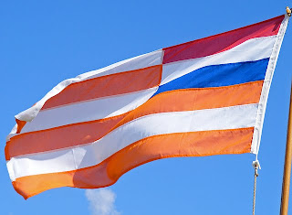 Note to first time learners: the Orange Free State was a Boer Republic established between the Orange & Vaal Rivers in southern Africa [ today known as the Free State Province of the Republic of South Africa ] on February 23 1854 as a result of the Orange River Convention. The northern portion of the Orange Free State was where the Winburg Republic [ which used a red saltire on a blue background as a flag ] was located which was established by Hendrik Potgieter & his followers during the era of the Great Trek. The Orange Free State Republic flag is said to have been loosely modeled on the design of the United States of America flag. The red / white & blue horizontal tri colour in the canton was the first Boer Republican flag ever adopted as it was the flag adopted for the short lived Graaff-Reinet Republic of 1795 - 1796 as well as the flag of the even shorter lived Swellendam Republic of 1795. The orange stripes are said to represent the Orange River. The Orange Free State was conquered by the British at the conclusion of the second Anglo-Boer War. This flag was depicted in the popular De la Rey video of Bok van Blerk which was depicting the Bitter Ender phase of the second Anglo-Boer War. The flag was & is one of the numerous Boer Republic flags on display within the Cenotaph Chamber at the Voortrekker Monument at Pretoria atop Monument Hill & is a popular symbol of the Boer folk.