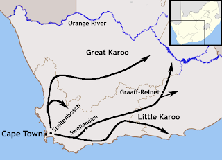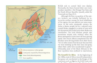There is another important point to remember. The Boer Republics were not the result of a Colonial nor European power but were rather the direct result of a homegrown people whose ancestors were nomadic pastoralists [ whose main migrations of the 1700s are shown on the above map ] who cut their ties to Europe [ noted in The Great Trek from Oliver Ransford within Chapter one among other authors ] quite early on becoming part of the African landscape long before the Great Trek. Thus the establishment of the Boer Republics was the natural outcome of a freedom struggle of an indigenous or homegrown people seeking a significant level of self determination.